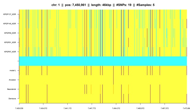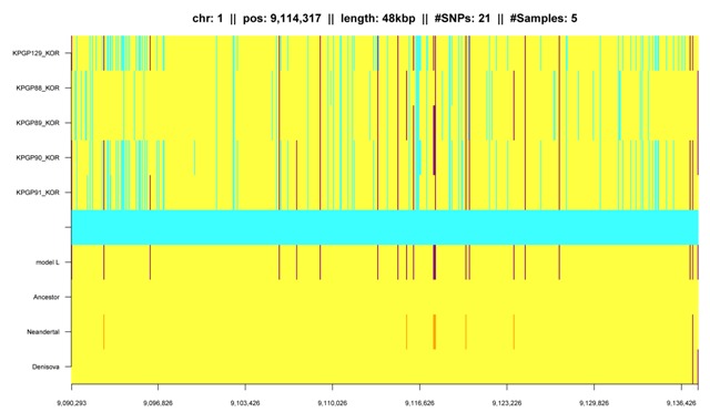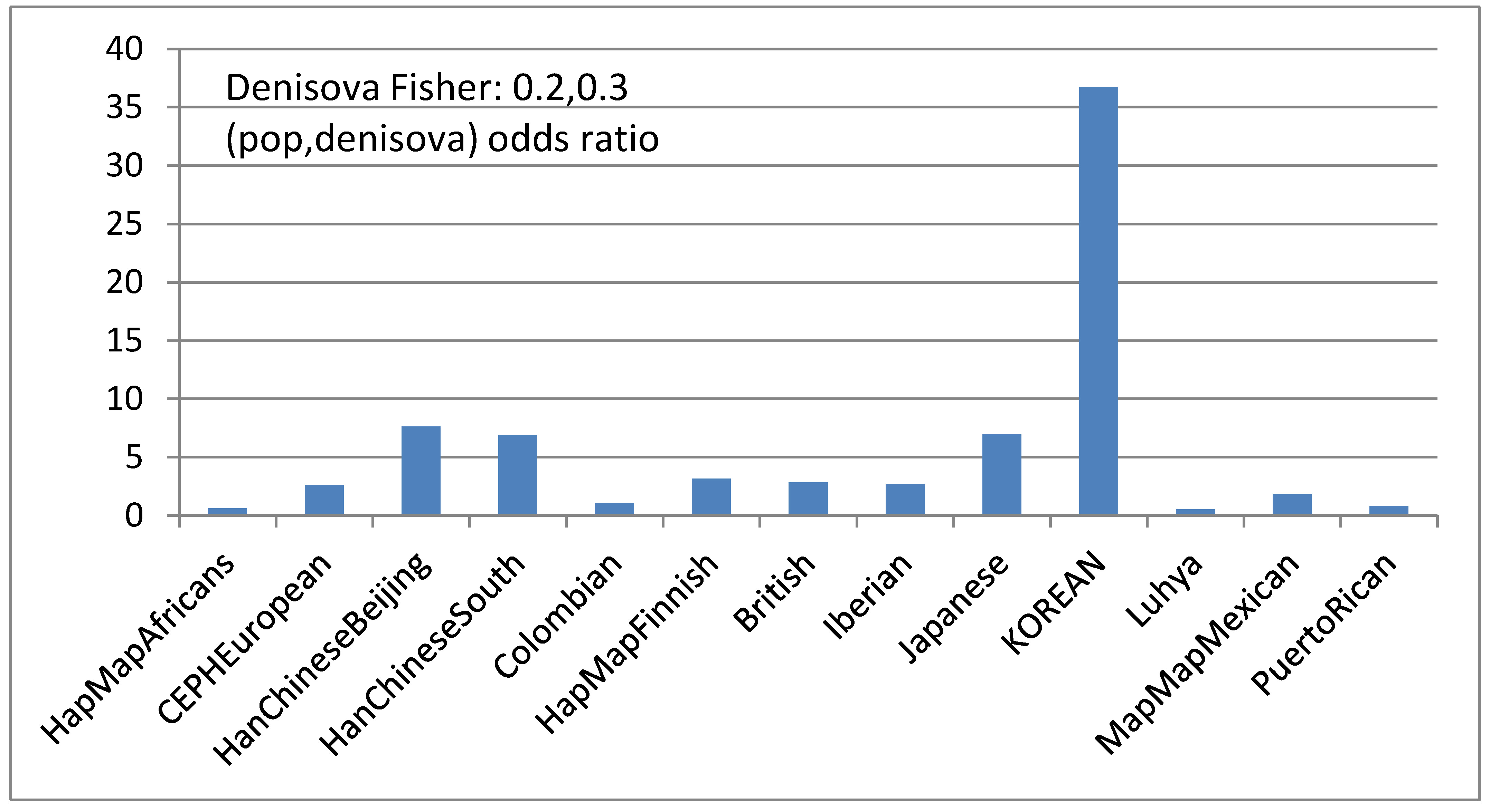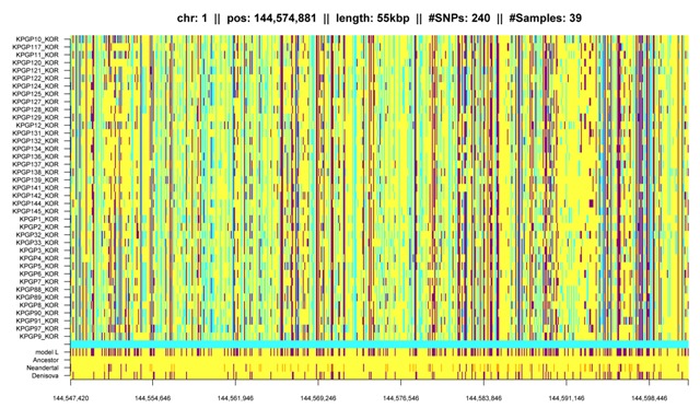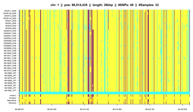 Fig. K4: Another IBD segment that matches the Denisova genome and is shared by Asians, in particular observed in Koreans.
