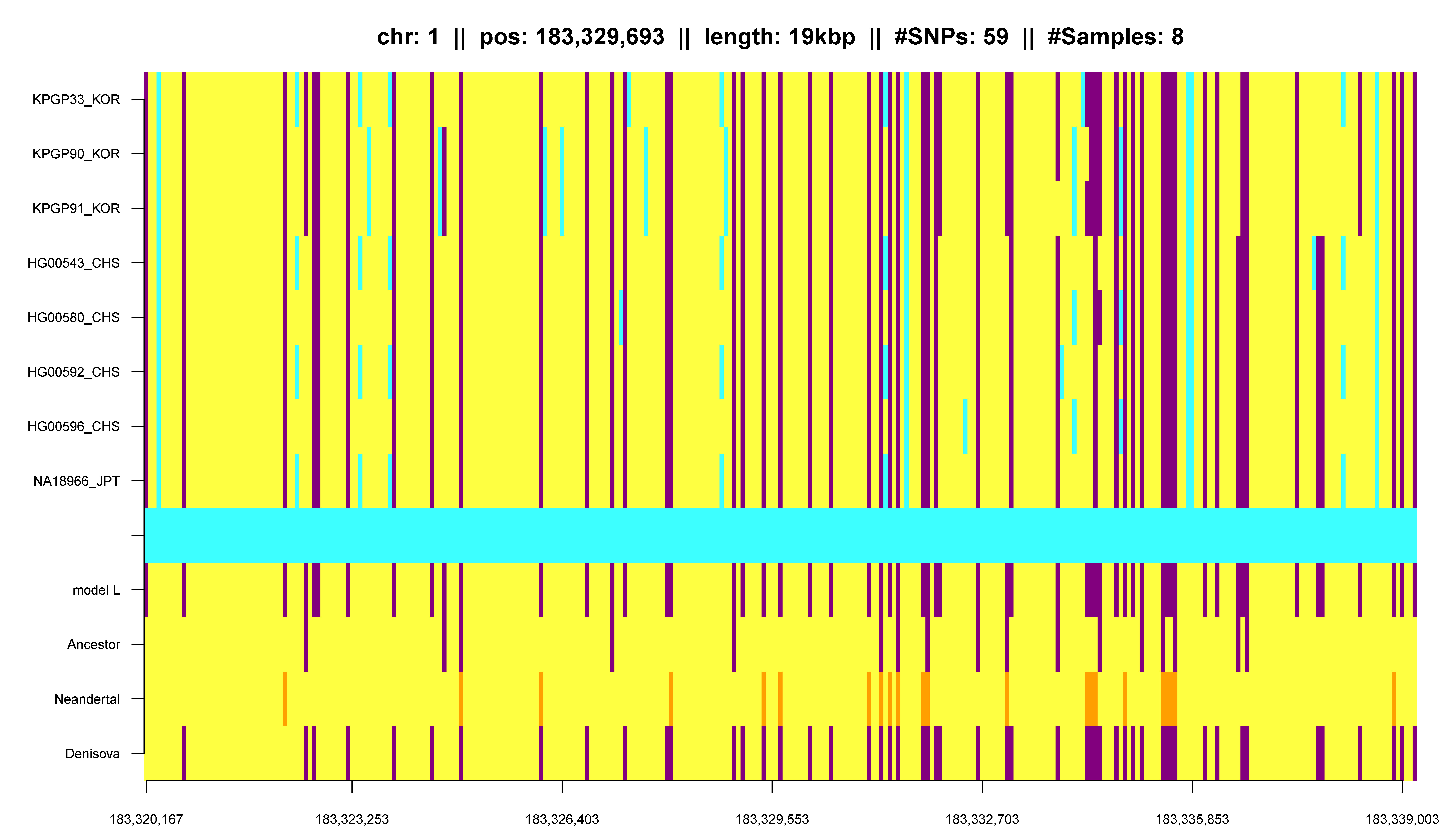 Figure K3: IBD segment that matches the Denisova genome and shared among Asians, in particular Koreans.