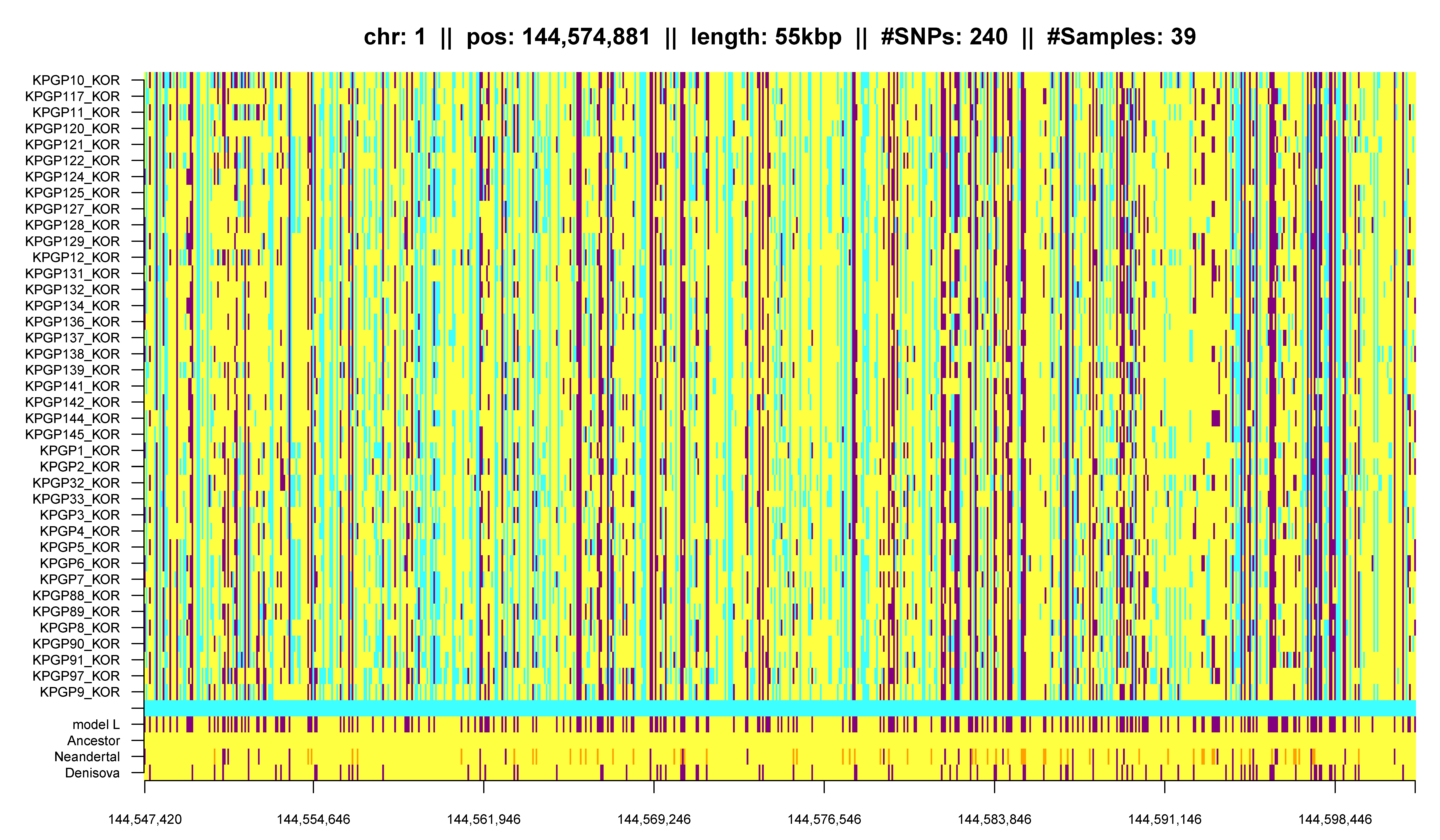 Figure K1: IBD segment caused by systematic sequencing errors. Note that this segment is observed in all KPGP individuals and only those, though KPGP10 is a Caucasian female.